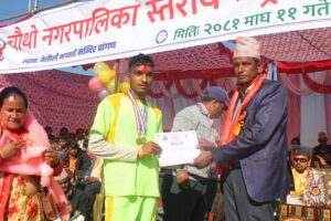 बैतडी : बैतडीको मेलौली नगरपालिका स्तरीय चौथो राष्ट्रपति रनिङ शिल्ड प्रतियोगितामा मेलौली वडा नं. ९ स्थित विशालपुर माविले प्रथम स्थान हासिल गरेको छ । प्रतियोगितामा १२ स्वर्ण, ५ रजत र १ कास्य जितेर प्रथम स्थान हासिल गरेको हो ।