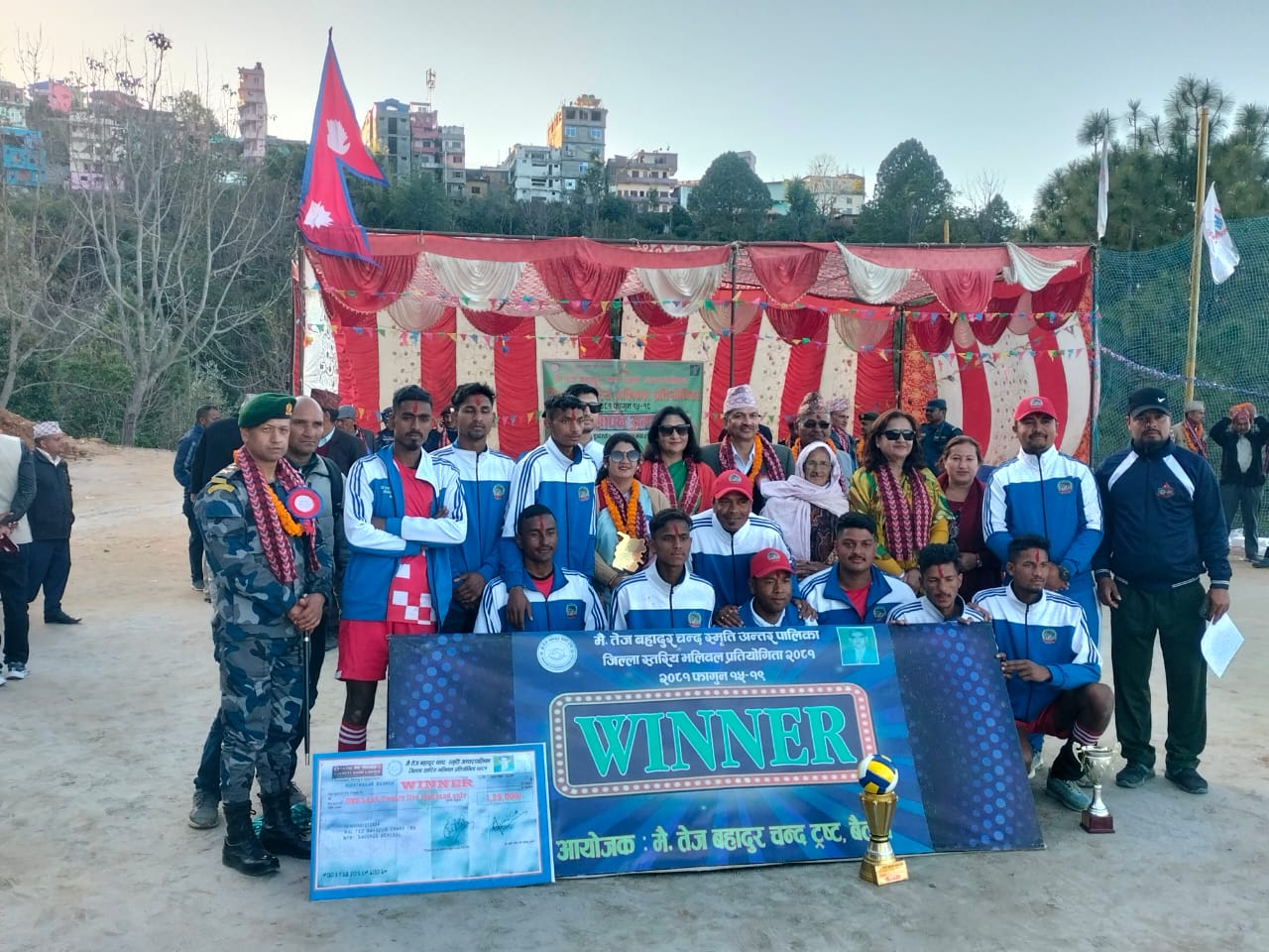 खेलाडीहरूलाई सुदूरपश्चिम प्रदेश प्रहरी प्रमुख,प्रहरी नायव महानिरिक्षक गणेश चन्द,प्रमुख जिल्ला अधिकारी दीर्घराज उपाध्याय,मैनेजर तेजबहादुर चन्द ट्रष्टका अध्यक्ष ईन्जिनियर ग्रिस चन्दलगायतले पुरस्कार वितरण गर्नुभयाे।