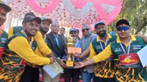 गुरुखोला लायन्यसका निराजन गौतम प्लेयर अफ दि म्याच चुनिएको स्कोरर तिलक बोहराले जानकारी दिए