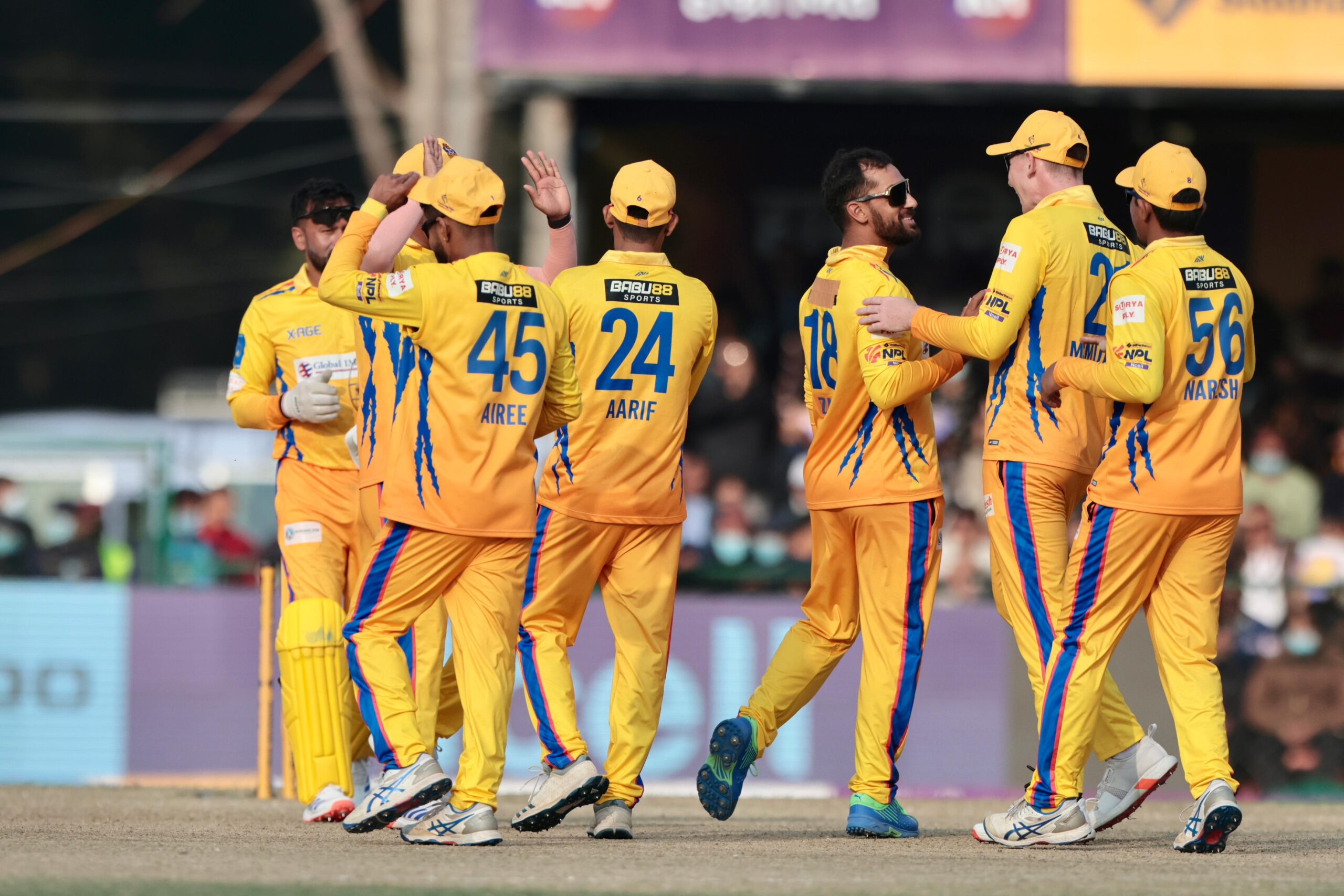 भीम सार्की र गेरार्ल्ड इरासमस १०-१० रन जोडेर आउट भए। सुमित महर्जन पनि १४ रन जोडेर आउट भएपछि काठमाडौं दबाबमा आएका थिए।